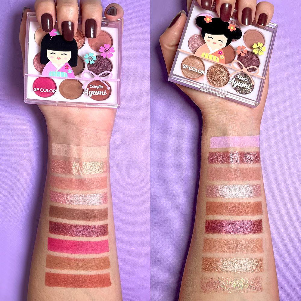 Nos últimos tempos, temos visto uma busca e curiosidade muito grande pelo lifestyle e estilo asiático, seja na moda, na gastronomia, produções audiovisuais e, principalmente no mundo da beleza! Pensando em trazer um gostinho do Japão pra vocês, nos inspiramos nas bonecas kokeshi, que são um símbolo do Japão e possuem um significado espiritual de sorte e proteção! São bonecas presenteáveis feitas de madeira e pintadas à mão, o que dá um significado e valor muito especial à elas! As bonecas kokeshi são delicadas e femininas e nada melhor do que sombras lindas para combinar com elas, né? As paletas de sombra da Coleção Ayumi trazem essa proposta: exaltar sua feminilidade e delicadeza através da maquiagem dos seus olhos! São 9 opções de sombras com tonalidades românticas e que combinam entre si, muito pigmentadas e fáceis de esfumar! Possuem uma variedade incrível de acabamentos, desde matte e cintilantes, até shimmers e um glitter prensado! A embalagem delas é super fofinha, com desenhos das bonecas kokeshi na tampa! Você vai se encantar com a praticidade, delicadeza e carinho que foram feitos os produtos da Coleção Ayumi, que carregam o encanto e singularidade das bonecas japonesas! Disponível nas versões A e B.