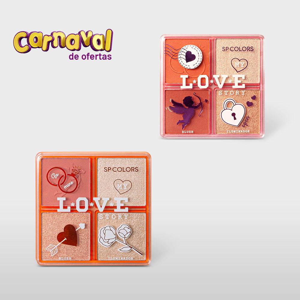 Você tem uma história de amor para contar? Aqui na SP Colors temos várias, principalmente as nossas histórias com cada produtinho que colocamos muito carinho e amor envolvido! Inspirada nas mais intensas e emocionantes histórias de amor que possam existir, trouxemos a linha My Love Story, que reune produtos essenciais que farão parte das suas histórias de amor mais lindas! O quarteto de blush e iluminador reune os tons mais lindos para sua preparação de pele perfeita! São 2 tons de blushes delicados e belíssimos, para corar suas bochechas, trazendo vida e aspecto natural, além de 2 iluminadores sofisticados, que trarão um glow de pele saudável maravilhoso! A paleta é super versátil, porque é possível usar os tons também nos olhos, além de poderem ser misturados para formar novas cores e acabamentos na sua maquiagem! São infinitas possibilidades, basta usar sua criatividade! Para ficar ainda melhor, o quarteto vem em uma embalagem extremamente leve e fininha, ótima para te acompanhar em todas as aventuras e loucuras que o amor vai te levar! Estamos animados para saber de todas as suas histórias que serão acompanhadas da linha My Love Story! Disponível nas versões A e B.