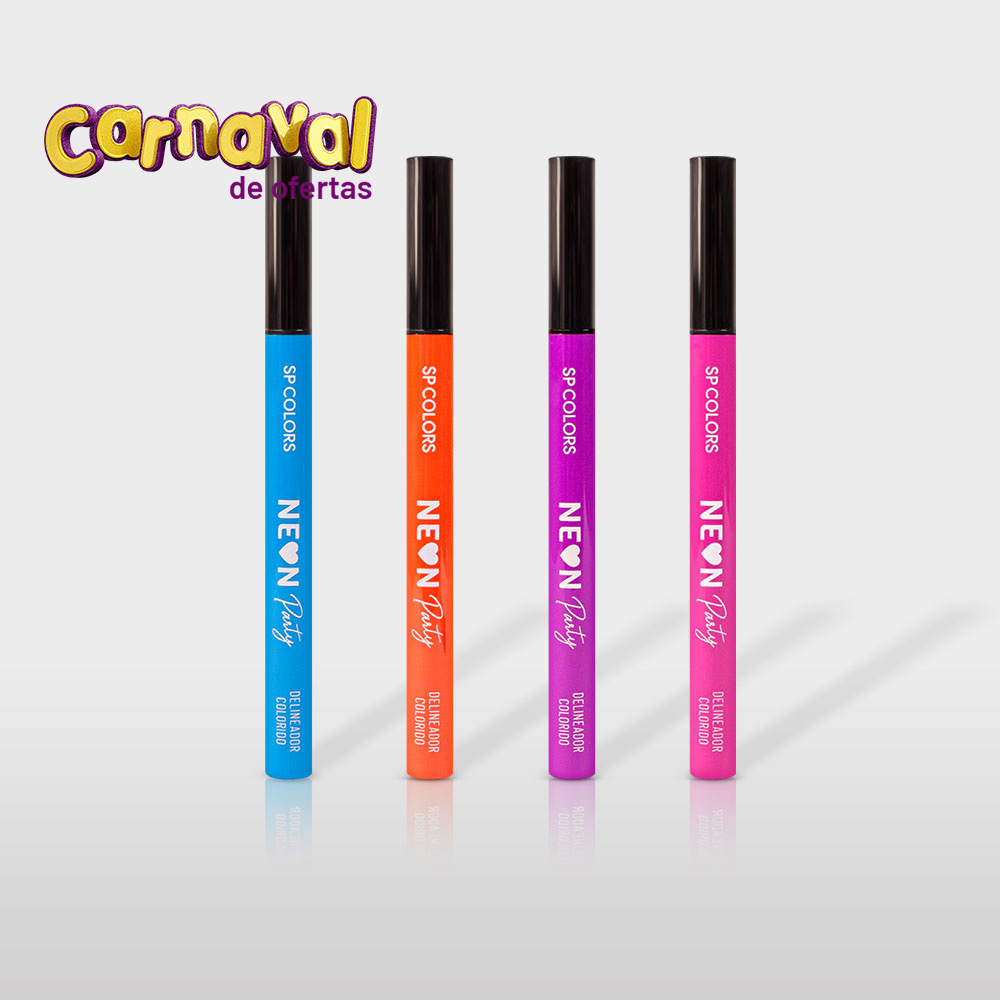 Delineados nunca saem de moda e sempre ficamos buscando formas de inová-los para sair do óbvio e fazer variações e combinações diferentes, né? Estava faltando na SP Colors um delineador neon que trouxesse vida e muita vibração para suas produções! Os novos delineadores Neon Party vieram nessa proposta, de dar cor e personalidade, além de ser prático de aplicar e fácil de guardar! Vieram no formato em caneta, que dá mais precisão na aplicação e contam com um pincel de ponta bem fina, que permite a construção de traços mais delicados ou mais grossos! Eles possuem a pigmentação na medida, com 4 cores neon lindíssimas, que fixam e são resistentes ao atrito, para te dar segurança durante todos os momentos! É só agitar antes de usar e partir para essa festa neon que está te esperando!