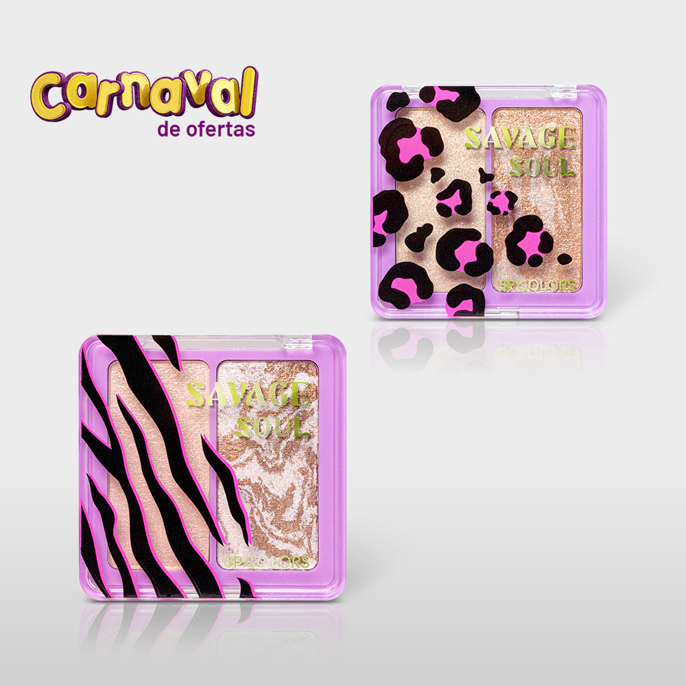 Savage Soul veio para despertar a alma selvagem que existe dentro de você, com produtos inspirados na estética e beleza do animal print, trazendo makes clássicas e atemporais para você! Para exaltar ainda mais seu brilho, nada melhor do que incluir nessa linha um duo maravilhoso de iluminador e bronzer para trazer um glow e evidenciar todo o potencial da sua pele e bronzeado! O iluminador possui uma textura fina e fácil de esfumar que deixará sua pele com um iluminado de tirar o fôlego! Já o bronzer traz a potência e cor perfeitas para dar o efeito bronzeado na sua pele... Além disso, ele possui uma textura marmorizada que complementa toda a vibe da alma selvagem, com um mix de cores incrível que ao serem esfumadas, formam o tom perfeito para o seu bronze! O duo vem em uma embalagem compacta a prática para o dia a dia, com a estética do animal print estampada que complementa sua experiência! Desperte essa alma em você também com a Savage Soul! Disponível nas versões A e B.