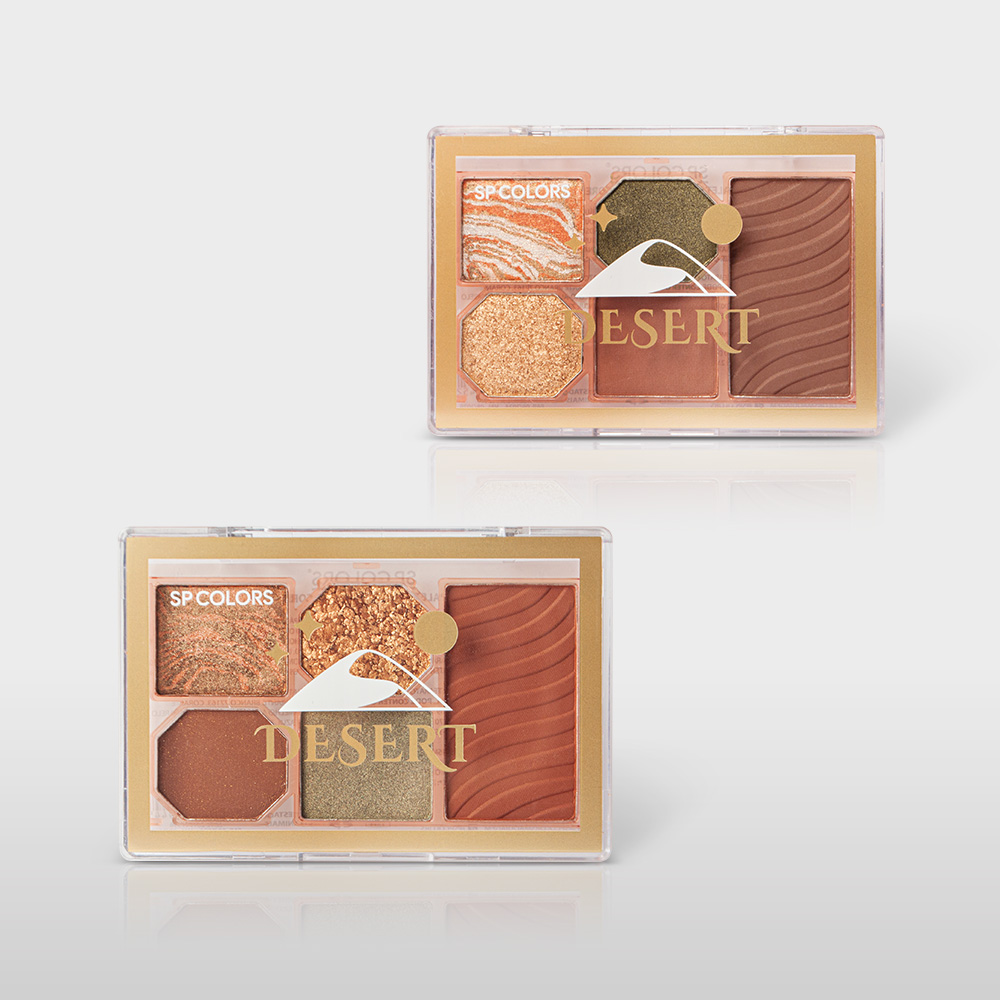 Desert traz produtos inspirados no deserto, com embalagens sofisticadas e luxuosas que te trazem a experiência completa de se maquiar com produtos de alta qualidade e performance! As paletas de sombra da linha são um espetáculo e foram inspiradas na areia do deserto e suas texturas e paisagens de tirar o fôlego! Com uma seleção de 5 cores na paleta, as sombras contam com pigmentos poderosos e fáceis de esfumar. Os tons terrosos aquecem, os dourados iluminam como o sol e os esverdeados trazem o mistério e sutileza dos cactos! As sombras possuem texturas diferentes, marmorizadas, flocadas, cintilantes e mattes, que remetem às dunas e aspecto arenoso das paisagens desertas! Você vai ficar encantada com a quantidade de reflexos e intensidade que cada sombra entrega! Com ela, é possível criar composições que transitam entre o clássico sofisticado ao glamour exuberante. A embalagem é um show à parte, pequena e compacta, que traz detalhes no tom de dourado que combina com o restante da linha Desert. Eleve sua maquiagem a um novo patamar com a Desert, que traz a experiência e beleza enigmática do deserto para o seu momento de beleza! Disponível nas versões A e B.